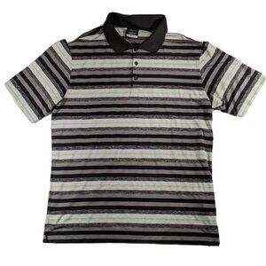 Nike Golf Dri-Fit Polo Shirt Black White Mens Large Striped Short Sleeve Top