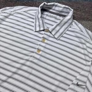 Nike Golf Dri-Fit Polo Shirt Mens XL White Gray Striped Short Sleeve Performance