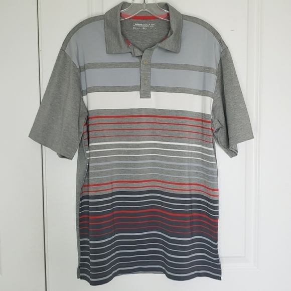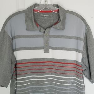 Nike Golf Dri-Fit Striped Short Sleeve Polo Shirt Gray Red M
