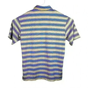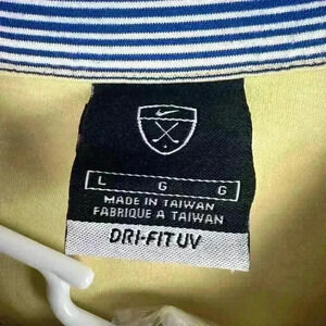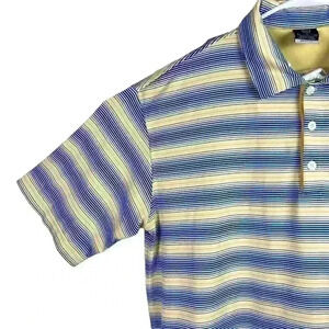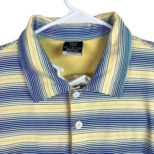 Nike Golf Dri-Fit UV Striped Polo Shirt Mens Large Yellow Blue Striped Stretch