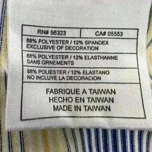 Elevate your golf game with this Nike Golf Dri-Fit UV Striped Polo Shirt. The shirt is designed with a stylish striped pattern in yellow and blue, perfect for a casual day out on the course. Made from a comfortable and stretchy blend of 88% polyester and 12% spandex, this shirt is perfect for any golfing occasion.