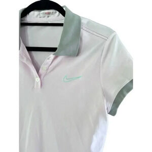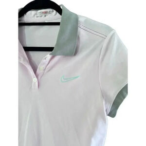 Nike Golf Dri-Fit pink White Short Sleeve Button Up Polo Shirt Size Medium