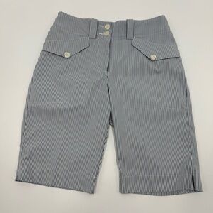 Nike Golf Dri-fit Women’s Striped Navy White Bermuda Shorts 0 Flap Pockets