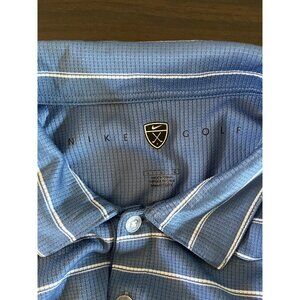 Nike Golf Mens Large Blue Activewear Short Sleeve Polo Shirt White Striped