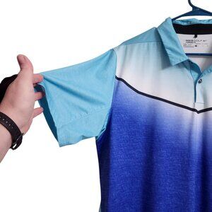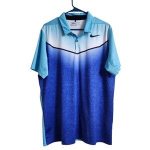 Nike Golf Mobility Fade Dri Fit Polo Shirt Mens Size L Teal to Blue Ombre Fade