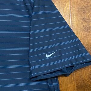 Update your golf wardrobe with this pre owned Nike Golf Performance Dri-Fit Navy Blue Polo Shirt in men's size XXL. Whether you're hitting the links or heading to the clubhouse, this shirt is perfect for any occasion. The moisture-wicking fabric keeps you dry and comfortable, while the short sleeved design offers optimal range of motion. With its great condition and classic Callahan Links logo, this polo is a must-have for any golfer.