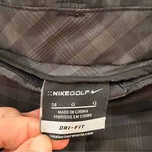 Nike Golf Performance Shorts. Flat front. Gray Check Plaid Wicking Tech Stretch. Size 34. Excellent condition. Side slit and back slit pockets.