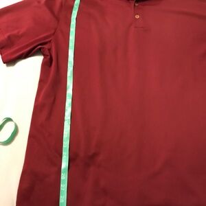 The Nike Golf Polo Dri-Fit Performance in red is a stylish and functional athletic shirt designed for men in size XL. Made from a blend of polyester and spandex, this short-sleeve polo is perfect for golfing or other active pursuits. The solid color, athletic fit, and Nike Golf branding make it a versatile and high-quality addition to any man's wardrobe. Pet and a smoke free home. Measurements in photos