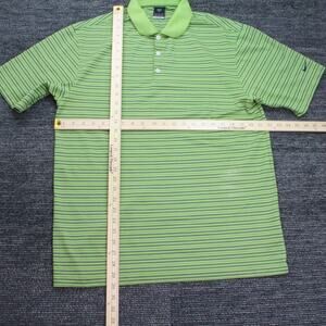 Nike Golf Polo Dri-Fit UV Large Green Striped Short Sleeve