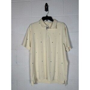 Nike Golf Polo Men L Pale Yellow Dri-Fit Icon Shield Print Shirt Light Stain
