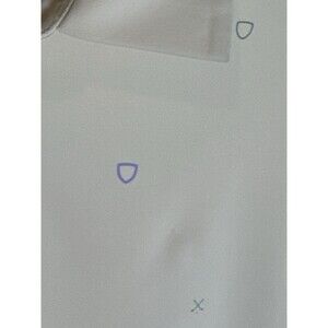 Please see photos- two tiny spots on front of shirt. Nike Dri-Fit golf polo in a soft pale yellow with allover golf-themed shield icons in teal, navy, and purple. Lightweight and breathable performance fabric with subtle stretch — great for warm weather, practice rounds, or casual wear. Finished with a small metallic Nike Swoosh logo tag near the hem.