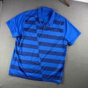 Nike Golf Polo Shirt Men 2XL Dri Fit Blue Stripe Activewear Athletic Performance