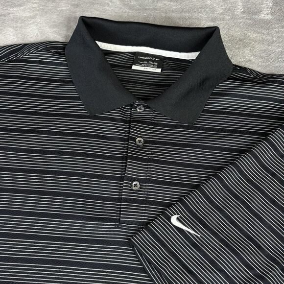 Nike Golf Polo Shirt Mens 2XL Black White Stripe Dri Fit Dry 274038-010