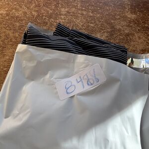 Color: Black with thin horizontal white stripe pattern and solid black collar.
