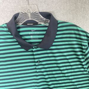 Nike Golf Polo Shirt Men's Large Green Blue Striped Short Sleeve Dri-Fit