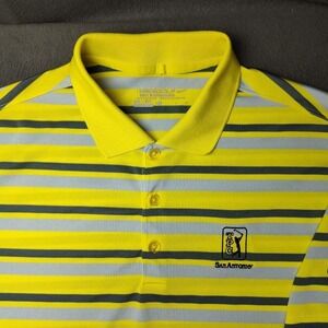 Nike Golf Polo Shirt Mens Large Yellow Gray Striped Dri-FIT TPC San Antonio