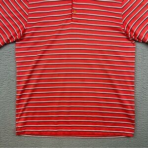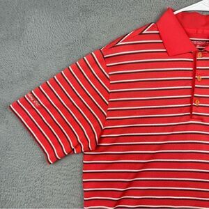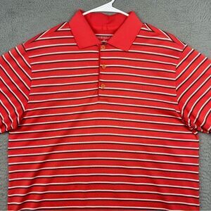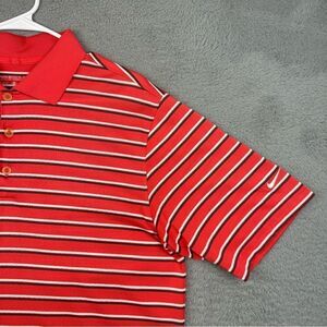 Nike Golf Polo Shirt Mens Medium Red Striped Mesh Lake Hickory Country Club Golf