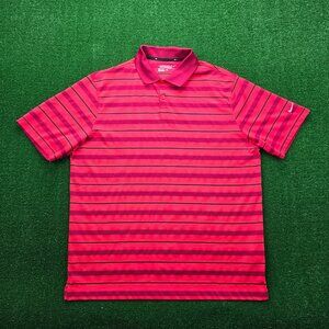 Nike Golf Polo Shirt Mens XL Red Striped Tour Performance Dri Fit Preppy Casual