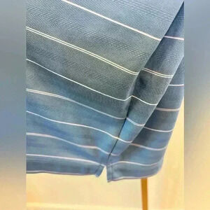 Elevate your golf game with this Nike Men's Blue Striped Polo, designed for both style and performance. Crafted from lightweight polyester, it features Nike's Dri-Fit technology to keep you cool and dry on the course. The short sleeves and regular fit offer comfort and ease of movement, while the button-up collar adds a touch of sophistication. Perfect for summer outings, this polo is machine washable for easy care. Whether you're on the green or enjoying a casual day out, this polo ensures you look sharp. Pre-owned but in excellent condition, ready for your next round.