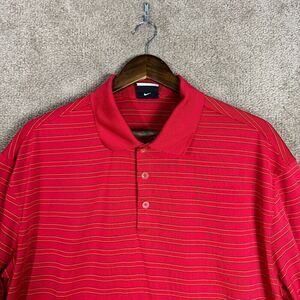 Nike Golf Polo Shirt Mens Size XL Red Striped Short Sleeve Performance Fit Dry
