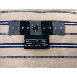 This Nike Golf Polo in tan with stripes is perfect for any golf enthusiast. It offers a comfortable fit and a stylish look. Ideal for casual outings or on the green, this shirt is in great pre-owned condition.