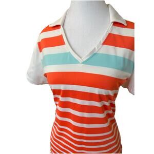 Nike Golf Polo Womens L Orange Striped Retro Tennis Preppy Casual Comfy Sporty