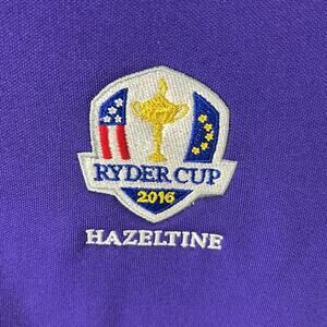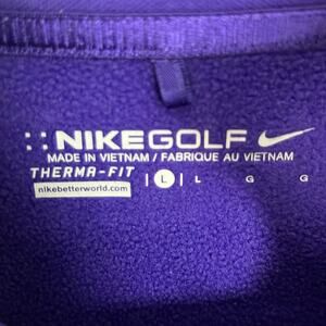Gently Used Nike Golf Quarter Zip Pullover. This is a women's large. Purple throughout. Ryder Cup 2016 logo on the chest which was held at Hazeltine golf course in Chaska, MN. Two zipper front pockets. Embroidered Nike swoosh on the shoulder. 100% polyester. Perfect for any golf fan!