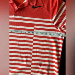 Nike Golf Red Orange & White Mens Stripe Polo Shirt Modern Fit Dri Fit Size XL