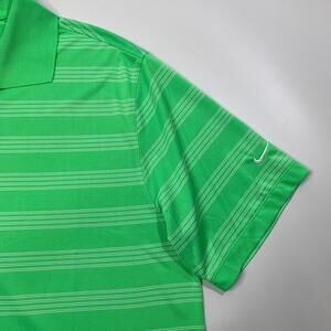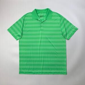 Nike Golf Shirt Mens L Large Parrot Green Striped Tour Performance Dri Fit Polo