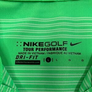 NIKE GOLF SHIRT MENS L LARGE PARROT GREEN STRIPED TOUR PERFORMANCE DRI FIT POLO