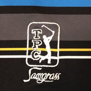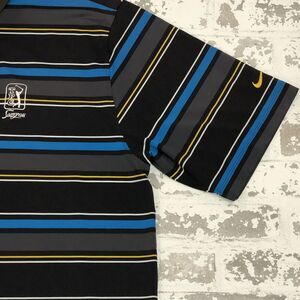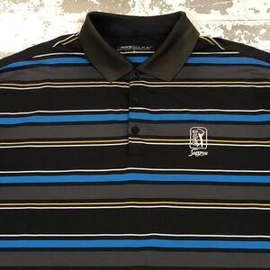 Nike Golf Shirt Mens L TPC Sawgrass Black Blue Yellow Striped Polo Short Sleeve