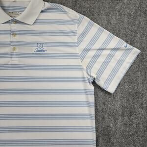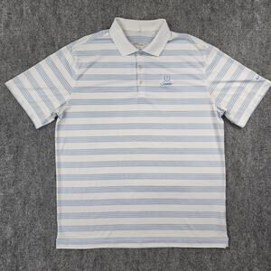 Nike Golf Shirt Mens XL White Blue Striped Active Tour Performance Polo Seaview