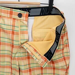 Nike Golf Shorts Dri-Fit Mens Size 34x11 Yellow Orange Plaid Elastic Waist Logo