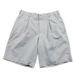 Nike Golf Shorts Mens 34 Medium Gray Chino Dri Fit Pleated Stain*