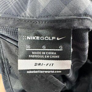 Nike Golf Shorts Mens Size 36 Gray Check Plaid Chino DriFit Performance Athletic