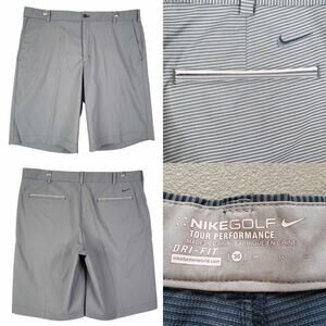 Nike Golf Shorts Tech Men’s 36 Dri-Fit Blue Striped Flat Front Chino Performance