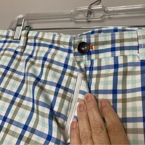 Nike Golf Sport Dri Fit plaid golf pant. Color plaid, gingham in white, grey, navy and aqua. Size 34/30