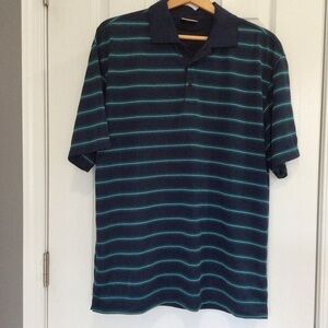 Nike Fit Dry Blue polo with aqua, yellow, blue stripe 100% Polyester💻
