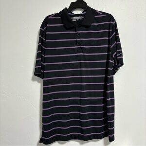 Nike Golf Tour Performance Dri Fit Men's Golf Polo XL Black Purple Stripe Short Sleeve
