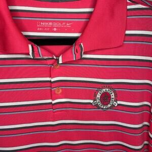 Nike Golf Tour Performance Dri Fit Men's Large Pink Striped Short Sleeve Polo. This shirt has an embroidery that is for "Atlanta Athletic Club" Great pre-owned condition.