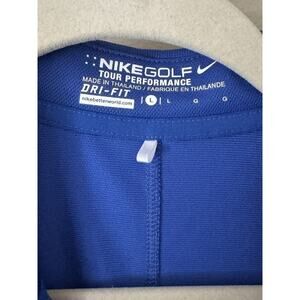 The Nike Golf Tour Performance Dri Fit Sleeveless Polo is a women's top in size Large. It features a sleeveless design, making it ideal for warmer weather or active pursuits. The polo is in a stylish Blue color and is made with Nike's Dri Fit technology for moisture-wicking and comfort during physical activities. This garment is branded by Nike and was manufactured in Thailand, ensuring high quality and performance for the wearer.