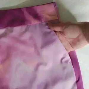Tour Performance Dri-Fit line skirt in a rainbow sherbet dyed pallet of orange, raspberry, and violet. 2 front and 2 back pockets. Side hidden zipper with button and tab closure.