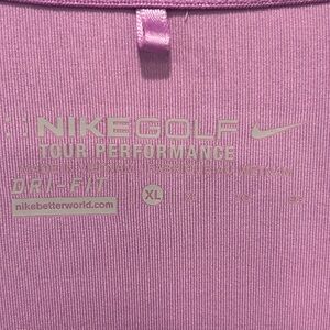 The XL Nike Golf Tour Performance Dri-Fit Short Sleeve Polo Shirt in Purple is a stylish and functional piece designed for women golfers. Made of 100% polyester, this lightweight shirt features a collared neckline, pullover closure, and a regular fit for comfortable play on the golf course. With solid pink color, moisture-wicking technology, and breathability, this shirt is ideal for travel, activewear, or casual occasions. Easy to care for with machine washable instructions, this Nike Dri-Fit polo is a versatile choice for all seasons.