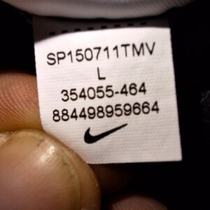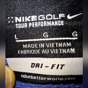 This is a Nike Golf Tour Performance Dri-fit men's large Polo shirt. It has a small spot on the right side of the front (see pic) that is barely noticeable. Athletic, athleisure, sports, sporty, wicking, comfortable, loose-fitting shirt.