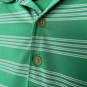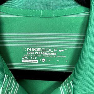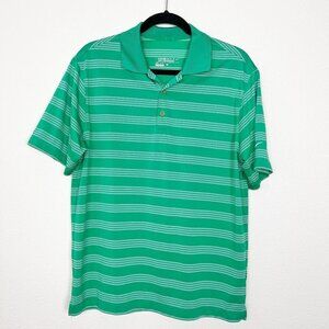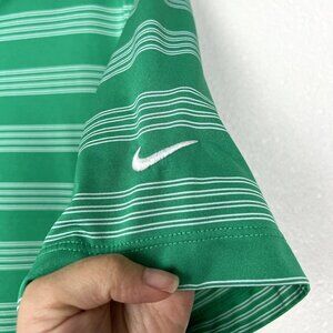 Nike Golf Tour Performance Mens Medium Green Striped Dri-Fit Short Sleeve Athletic Polo