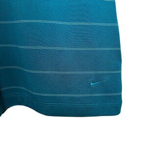 The Nike Golf Tour Performance sleeveless tank top in size XL is designed for women who enjoy casual occasions with a touch of style. This blue top features a striped pattern, collared neckline, and button closure, making it perfect for a day of golf or outdoor activities. Made of polyester jersey fabric, it offers breathability and stretch for comfort. The tank top is accented with embroidered Nike branding and is suitable for the summer, fall, and spring seasons. Perfect for those who appreciate a sporty and colorful look.
