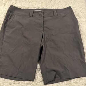 The Nike Golf Tour Performance women's golf shorts in size 16 feature a sleek gray color and a comfortable fit designed specifically for golfing activities.