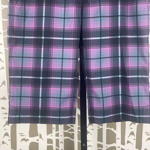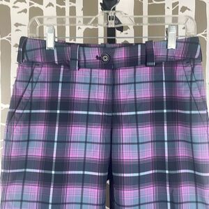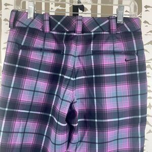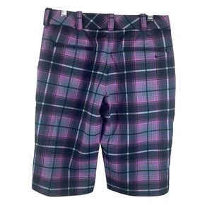 Additional Details: Plaid print, stretchy Dry-Fit fabric, side splits on hems, fully functional deep front and back pockets. From the Nike Golf Tour Performance Line.