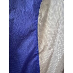 Elevate your golf game with this Nike Golf windbreaker jacket. A vibrant blue hue dominates the design, accented by gray and white panels for a modern, sporty look. The lightweight construction ensures unrestricted movement, allowing you to swing with ease and stay comfortable on the course. Full zip closure and zippered pockets provide convenience and security for your essentials. This jacket is perfect for cool mornings on the green, breezy afternoons at the driving range, or even casual outings when you want a touch of athletic style.