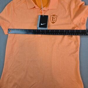 Stay cool and comfortable on the course with this Nike Golf women’s Dri-Fit polo shirt. Featuring moisture-wicking technology, this lightweight polo is perfect for golf, tennis, or casual wear. Finished in a bright orange shade, it includes an embroidered “E” crest patch dated 1923 on the chest and a Nike swoosh logo on the sleeve.